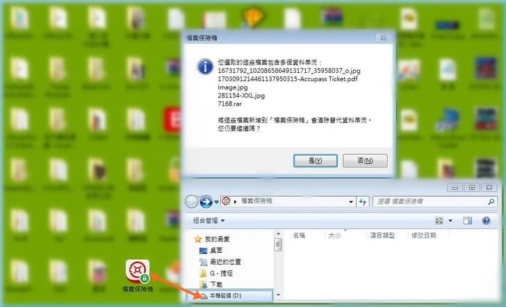 【▼】桌面上會多出一個「檔案保險箱」的捷徑,這個就是前面勒索剋星設置好的私密資料夾,點入資料夾時會被要求輸入密碼,輸入完就可以看到私密檔案囉~(嘿嘿)