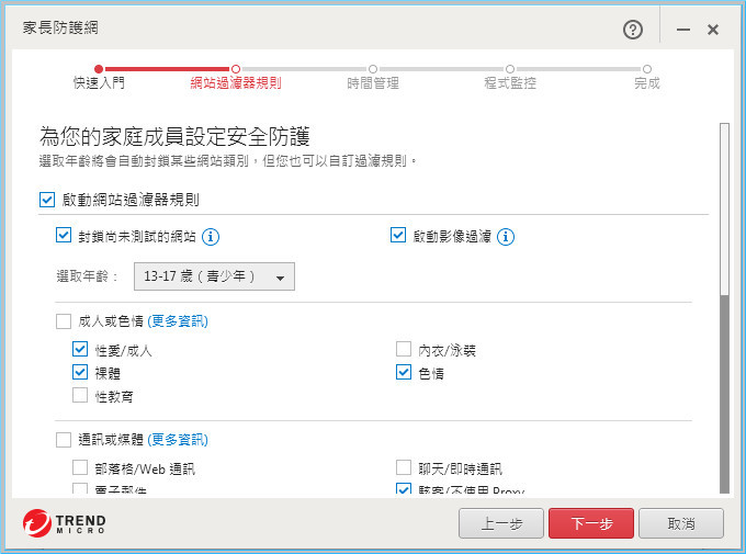 【▼】家長防護功能是趨勢PC-cillin 2017雲端版四大功能其中之一,不像其他功能還有其他子功能,完全就是針對家長為孩子封鎖色情、阻擋暴力而生。