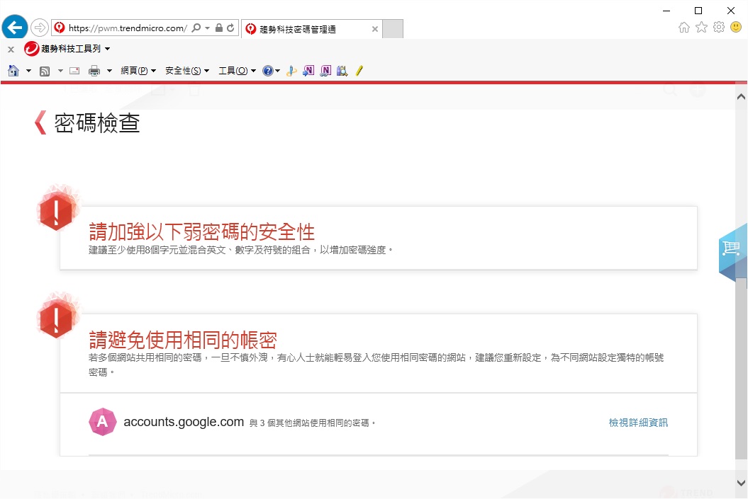 ▲ 密碼管理通找到25個未受保護的密碼,其中IE有23組,Chrome有2組。