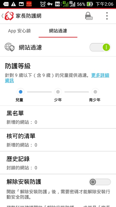 ▲ 網站過濾功能更可以直接管理黑名單,加入不想讓未成年子女瀏覽的限制級網址。