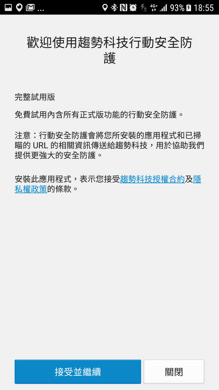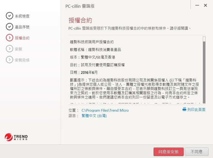 產品的授權合約,仔細閱讀後,按下「同意並安裝」。