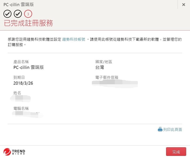 如果你之前沒註冊過,其實註冊也不麻煩,跟著PC-cillin 2017的步驟註冊即可。