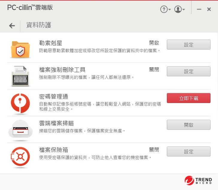 PC-cillin 2017在防毒的功能已經很強悍!但問題是它可不是只是個防毒軟體而已,它還有: