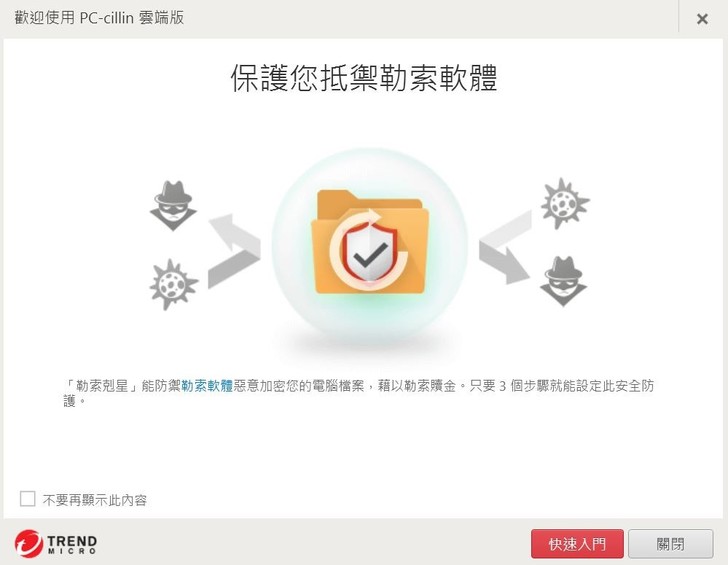玖、 PC-cillin 2017-全方位測試與體驗→防勒索病毒篇: