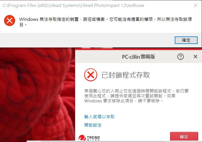 當你用滑鼠執行的時候,PC-cillin的家長防護系統就出現,讓使用者無法使用,這點對無法一直在孩子身的父母真的很實用,這樣就不用擔心小孩偷開電腦玩遊戲了...