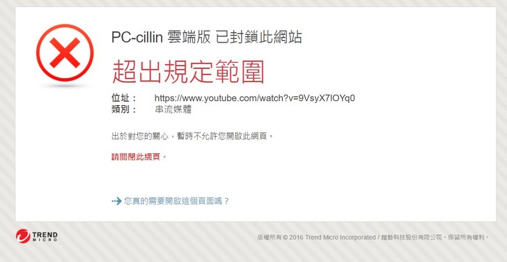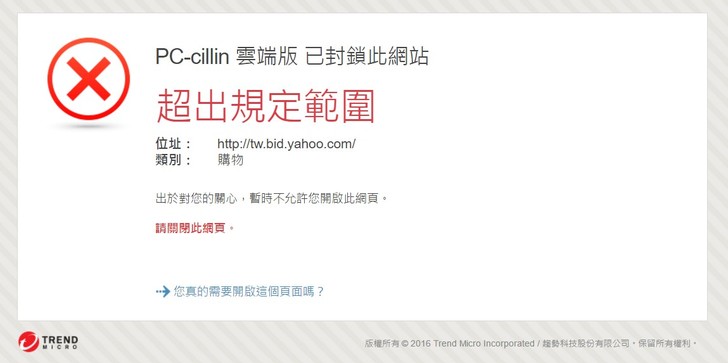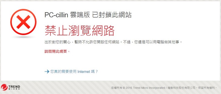 接下來PC-cillin家長防護就出動了,直接通知使用者不能使用