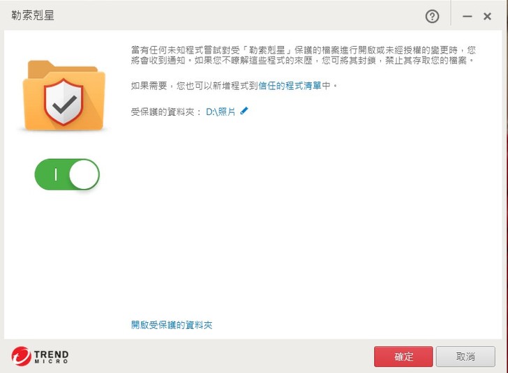 有受保護的資料匣都會出現一個防護的圖示,這樣我們也可以清楚的知道那個資料匣受到保護,當有人使用電腦不小心上了有勒索病毒的網站,受防護的資料匣就不會被病毒入侵...