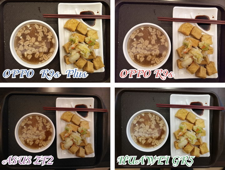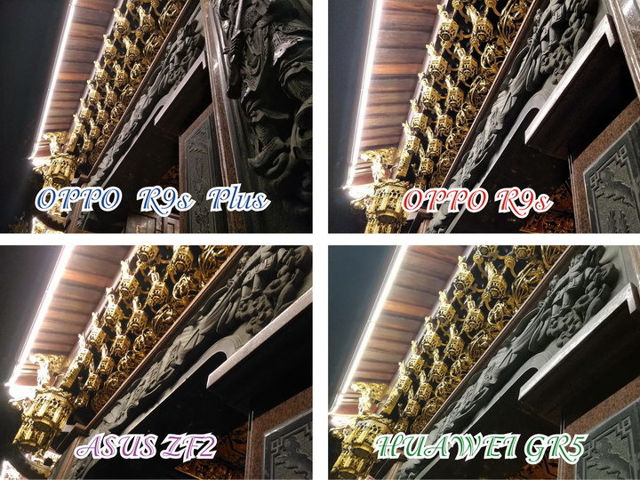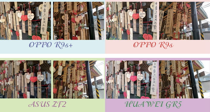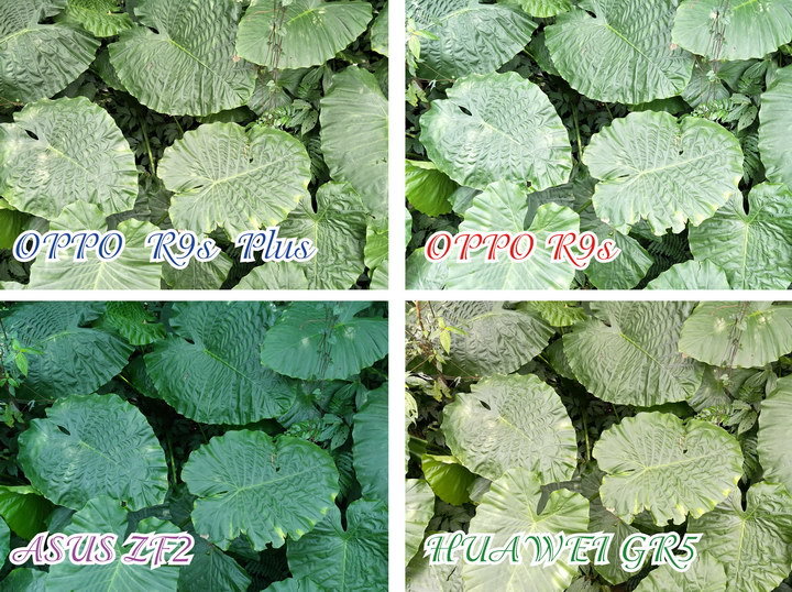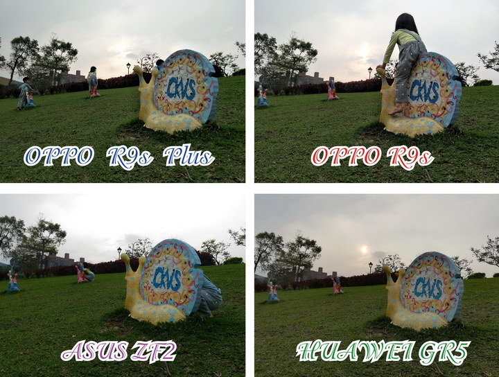 Huawei GR5 2017的反差控制的最好, OPPO R9s Plus與 OPPO R9s則是些微的高光有過曝現象