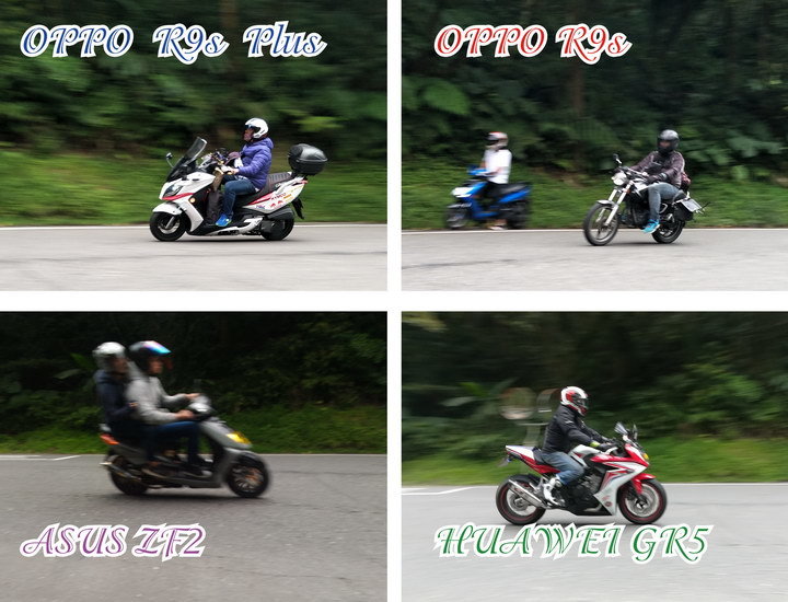 ASUS Zenfone 2與Huawei GR5 2017 則是來不及對焦完成, 重機就已經飛奔走了