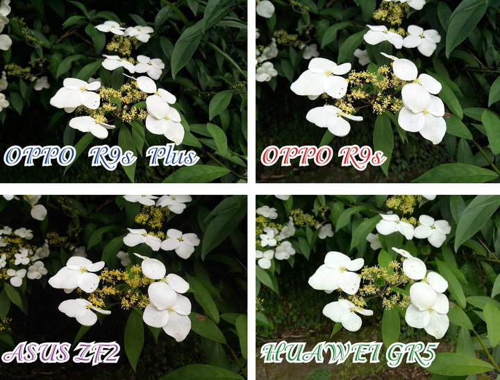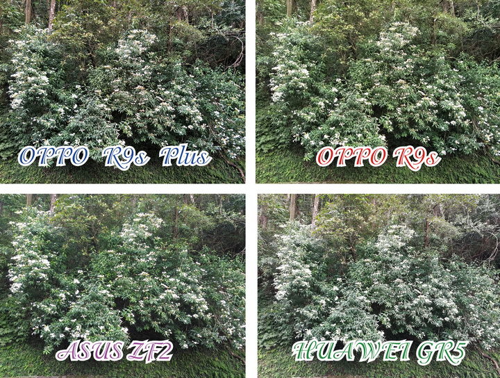 ▲ 油桐花, 除了Huawei GR5 2017的色彩有較大的色偏外, 其它都差不多