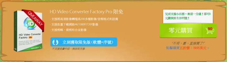 HD Video Converter Factory Pro 下載網址:http://www.videoconverterfactory.com/easter/licenses/TWLicense-HDVideoConverterFactory.zip