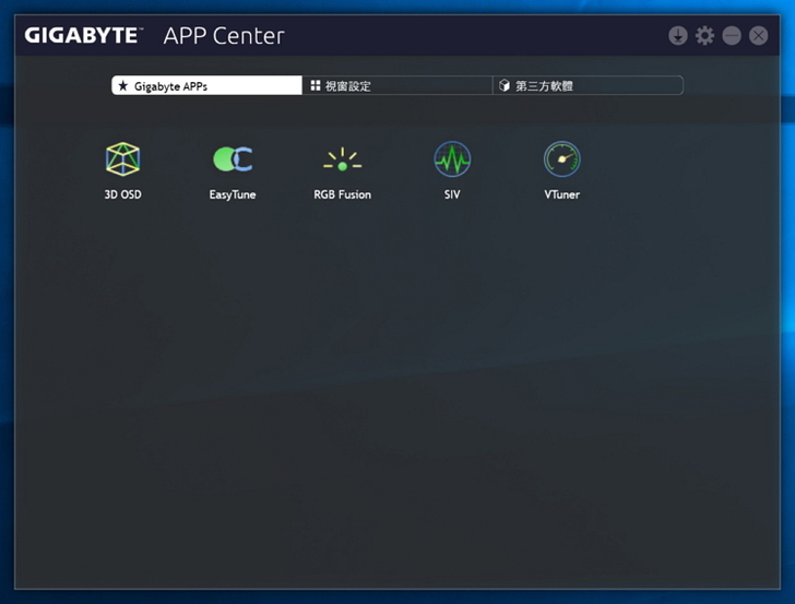 GA-AB350M-Gaming 3 板載軟體部分,如需使用更多功能需要安裝技嘉 APP Center