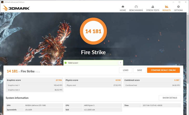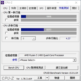 R5 1400︰單一執行緒 1915 / 多執行緒 8373