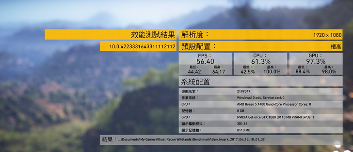 R5 1400︰FPS 56.40 / CPU 使用率 61.3%