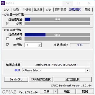 i5 7400︰單一執行緒 1754 / 多執行緒 6556