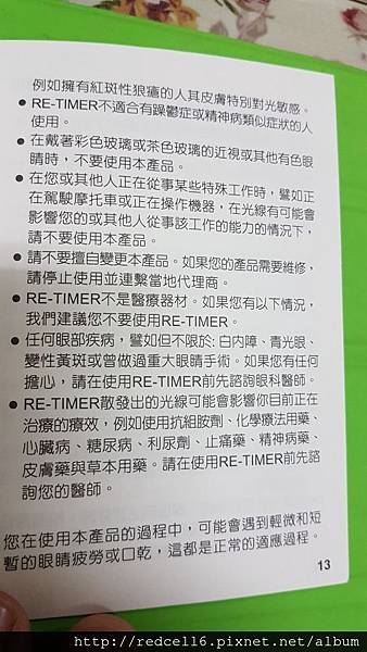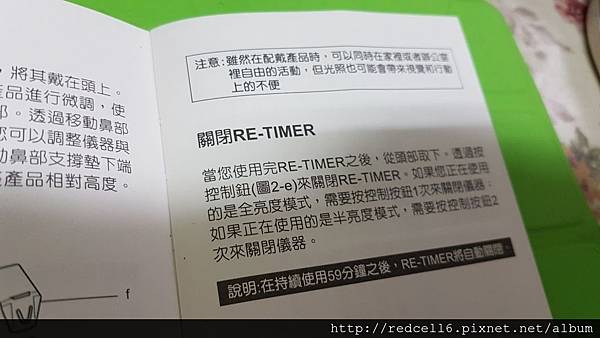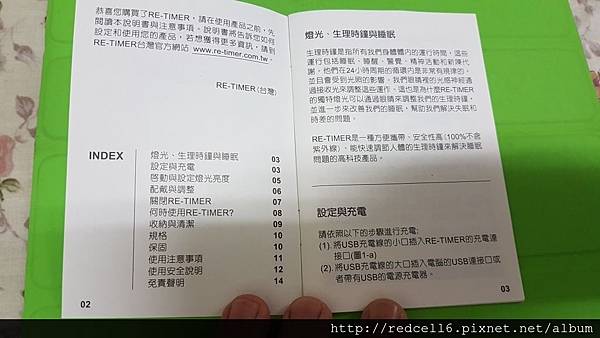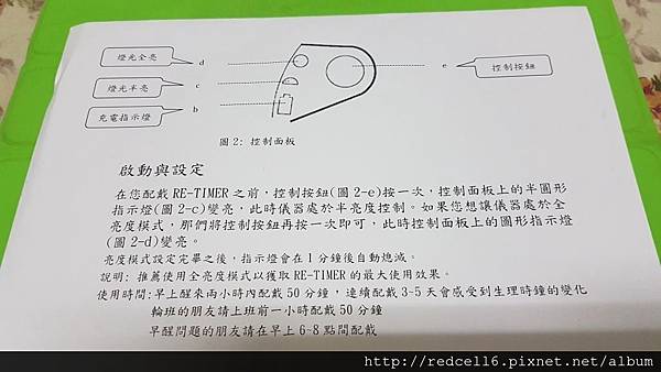 【▼】RE-TIMER生理時鐘調節器圖文並茂的中文使用對照說明。