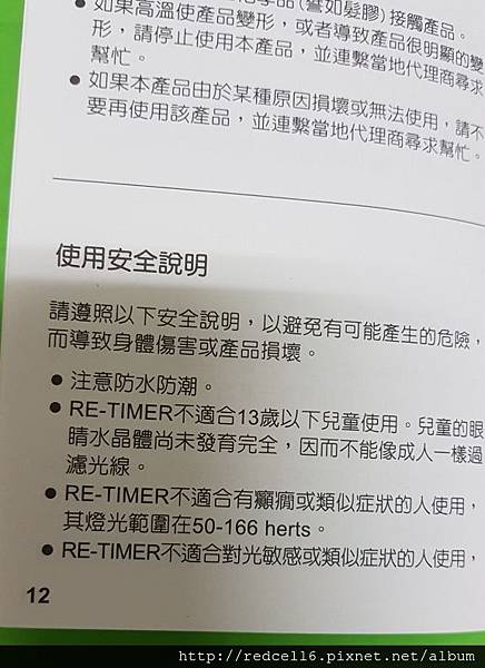 【▼】RE-TIMER生理時鐘調節器產品使用說明書。