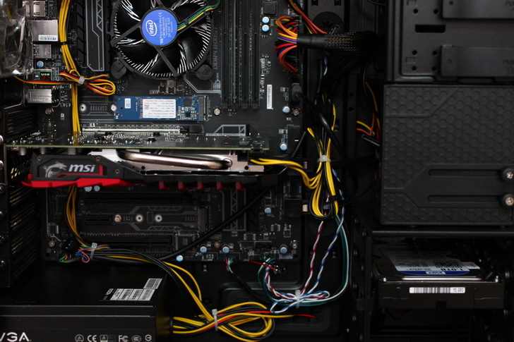 ▼ 捷元宙斯機 內部:同樣整線整得很漂亮;硬體方面為 一條 美光 8GB記憶體、一條16GB Intel Optane Memory、一顆 1TB WD藍標硬碟、微星主機板及微星顯示卡(詳細規格筆者就不描述了)。