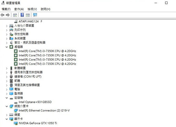 ▼ 裝置管理員:磁碟機可以看到顯示為 Intel Optane+931GB SSD,代表已安裝 Intel Optane Memory 且加速完成。