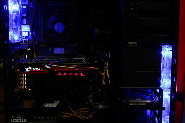 ▼ 捷元宙斯機 搭載的 三顆散熱風扇、主機板、顯示卡,都有 LED設計,開機後都會有酷炫的燈光效果。