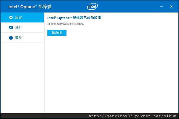 不論是關閉 Intel Optane 或是重新開啟,都需要重開機才能使用。