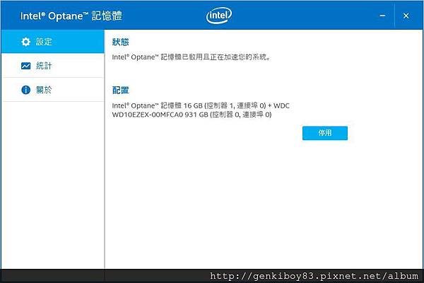 系統已經預先安裝好 Intel Optane記憶體的管理程式,預設是開啟的狀態,之後可以自行關閉或是開啟。