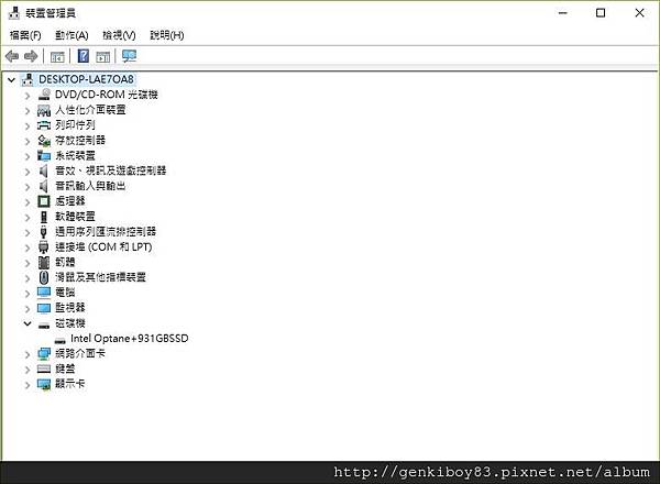 使用 Intel Optane 時,在裝置管理員裡面看到的磁碟機會變成 Intel Optane+硬碟容量所組成的 SSD