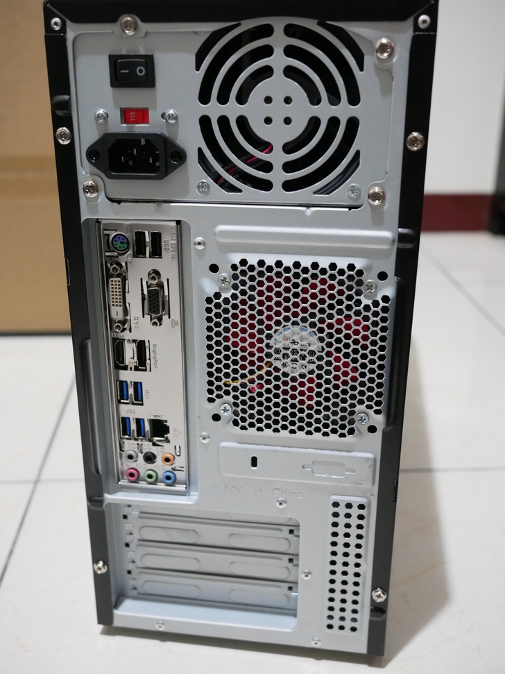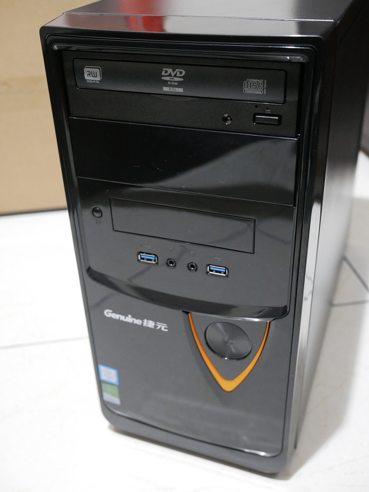 機殼是一般的兩大一小,普普通通沒什麼特別的, 前方面板有兩個UBS插槽、麥克風、耳機以及電源紐。