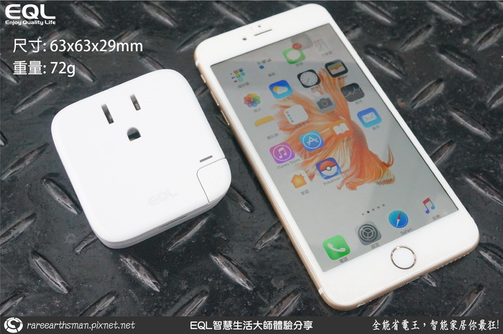▲智能插座外觀就是一個白色小方塊,四周使用圓角修飾,體積不是很大,跟iPhone 6 Plus來比較就知道它的體積不是很大,重量也滿輕的。