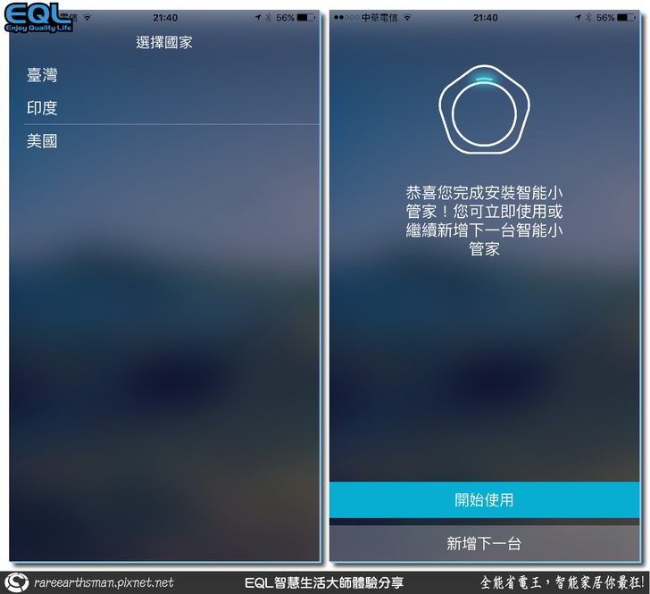 ▲接著APP要讓使用者選擇所在的位置,這個選擇的原因是如何我就不知道了,使用手冊是寫可以提供該區建議適合的溫溼度,選擇順序是先選國家、縣市,最後是行政區,像我就點選我家的永和區;這樣就完成智能小管家的連線。