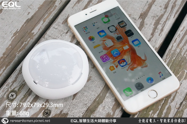 ▲智能小管家尺寸其實還滿小一個,拿iPhone 6 Plus來比較一下就知道,真的滿小的,重量也輕。