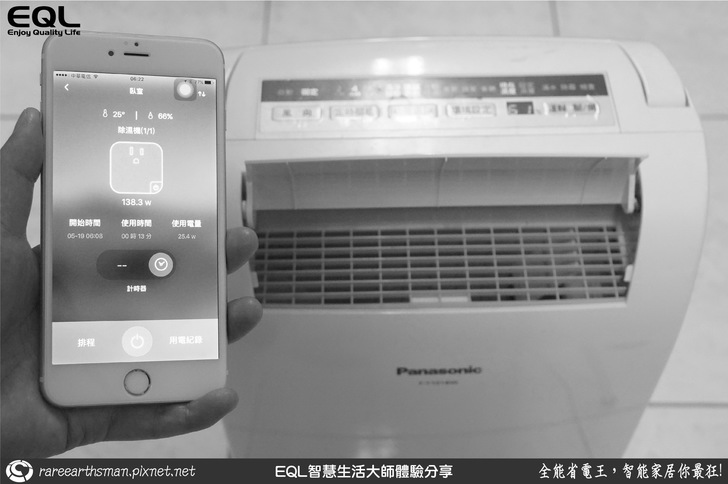 ▲家裡還是有一些電器是不大適合智能插座使用的,像是這台除濕機使用的是微電腦的電源按鍵,除濕機的插頭接上電源之後還是需要手動的按下電源鍵,機器才能開始運轉,這類型的家電,特別是這類型的薄膜式開關都比較不太適合智能插座來使用;其實也並非是完全的不能使用,雖然不能透過智能插座來控制家電的開(雖然最重要的是開的動作),但是關的部分還是可以控制的,而且也可以記錄電器的耗電量的,也可以有每周與每月的用電量紀錄。