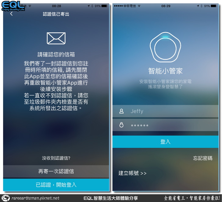 ▲如要使用"智能小管家"APP,第一件事就是要作帳號的登入,如果沒有帳號的話就需要新建一個帳號才可以使用。