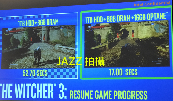 其實Josh整個技術分享過程頗久,但講的內容都很鉅細靡遺,加上人又很帥,可惜我一時聽得入神忘了錄音存證(打錯字,是存檔..不是流口水..),加上人老失智,只能盡可能分享重點給大家畫筆記…不過有個重點是,Josh分享了一些比較使用Optane Memory在HDD開機、開啟不同的Game與軟體的速度比較影片(同一系統中,有裝阿婆湯與沒裝阿婆湯..又筆誤,我是說Optane Memory,大家就都聽得懂一些台語吧?)速度真的快很多唷!!!!!!