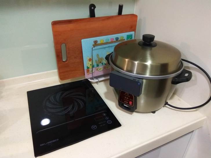 ▲通常電鍋是不錯選擇,即使用不銹鋼機身,通常都具有鐵的成份,所以能吸,但若要使用電鍋時,就不能用了,要找其他地方吸住。