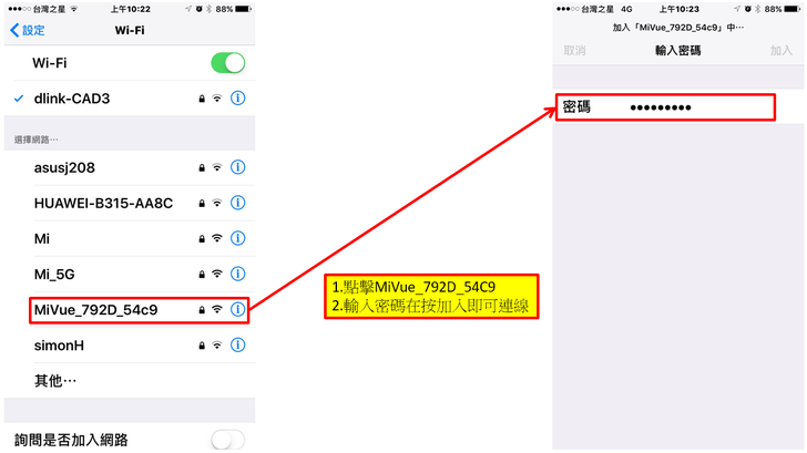 2.點擊MiVue_792D-54C9,在輸入密碼即可連線機器。