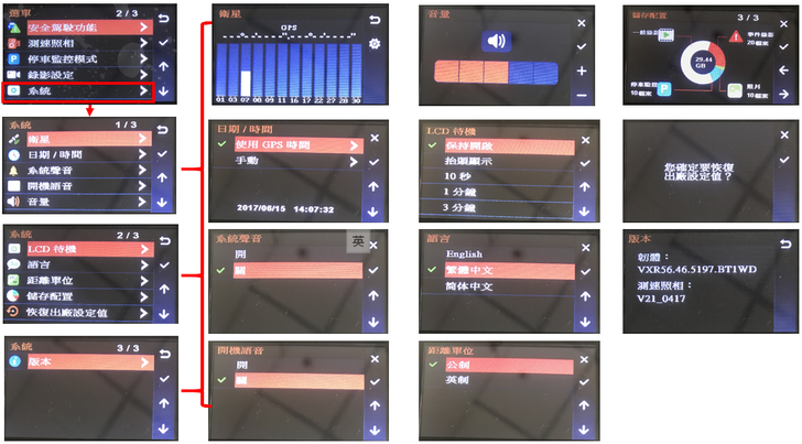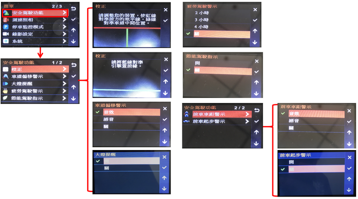 校正-這功能在行車記錄器第一次看到還滿驚訝的,剛開始使用校正,對於一些警示、提醒個人覺得還滿準確的。