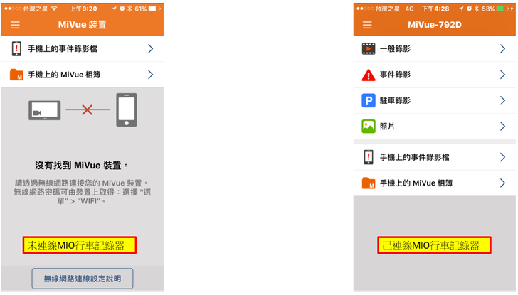 當連線MIO行車記錄器時,就可以把行車記錄器檔案下載回到手機備存與觀看!