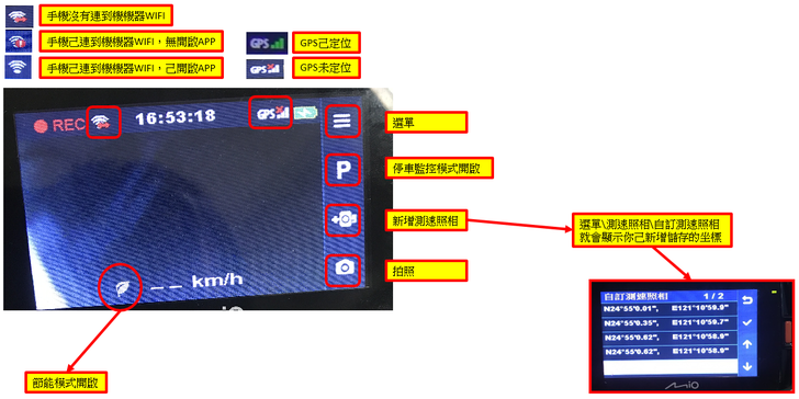 (手機照攝行車記錄器畫面,手機畫面顯示背景為黑色-因為照不出來╮(╯◇╰)╭)