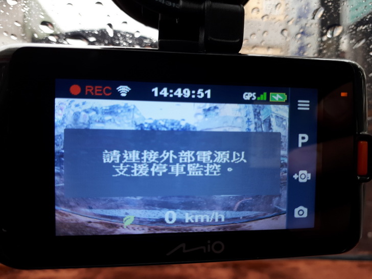 MIO MiVue 792駐車模式一旦啟動時,螢幕畫面會顯示“請連接外部電源”的字樣來因應MIO MiVue 792行車記錄器的供電