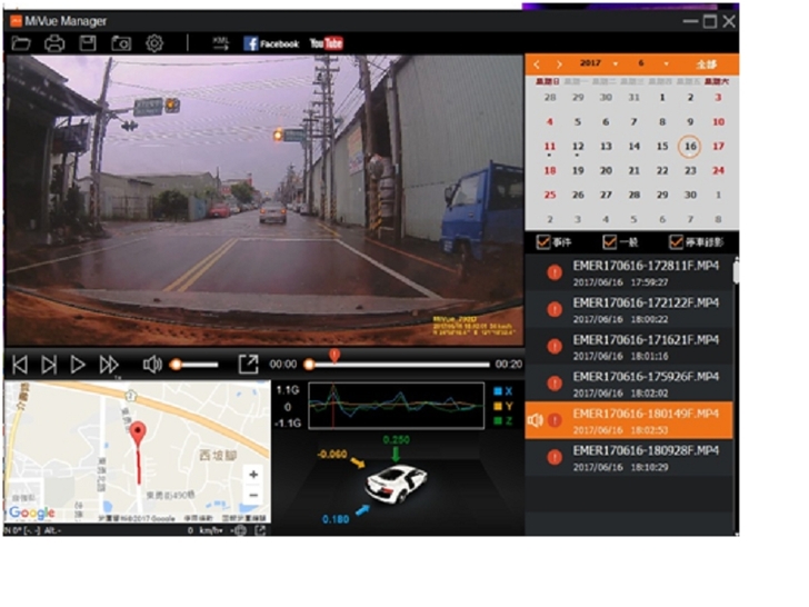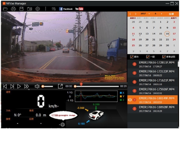 MIO MiVue 792除了上傳手機看影片外,也有官方所提供的Mio Manager播放軟體來觀看。可以清楚記載當時的時速多少?在哪路段發生?的萬一發生狀況了,是從哪邊遭受到撞擊,可以更加清楚瞭解事故的原因