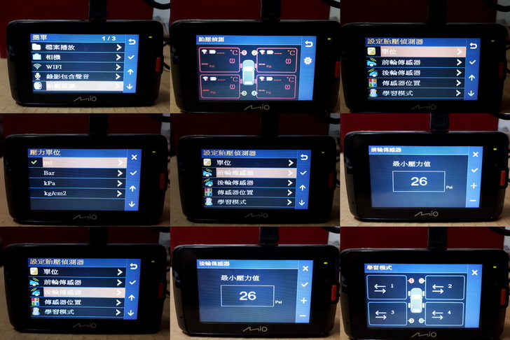 這個功能需搭配MIO所研發的胎壓偵測配件,因此這功能無法進行測試。
