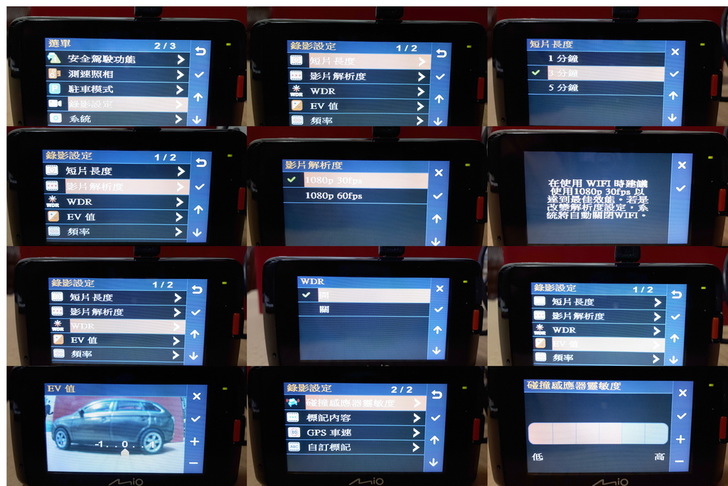 分別分為一般錄影,事件錄影;駐車錄影及照相。因駐車錄影的部份需要另外選購配備,所以這部份無法體驗到。
