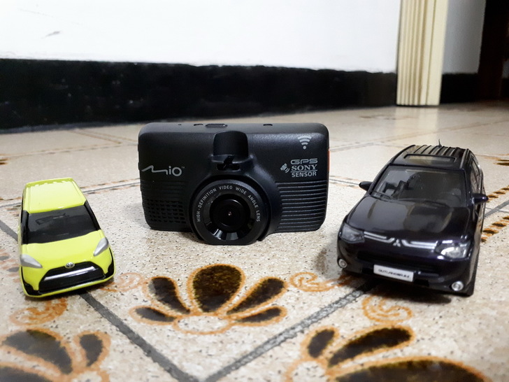因不太可能找真車去碰撞,所以用小模型車來示範,MIO MiVue 792如何自動第一時間將事件錄影上傳到手機上。