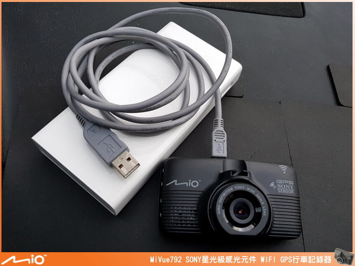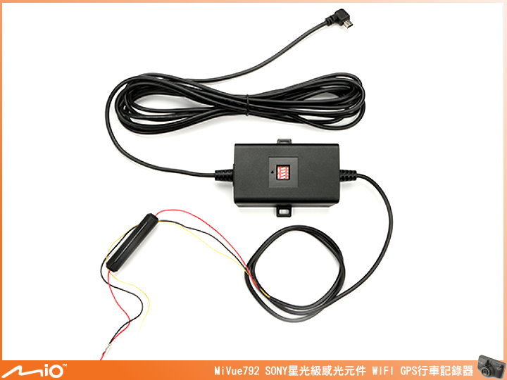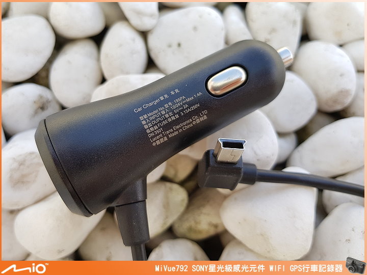 ▲由於 MiVue™ 792 內建的電池容量只有 240mAh(僅供給斷電後影片處理完結使用),所以一定要使用 5V/2A 車用充電器(線長約 3.5 m)或另安裝電力線。