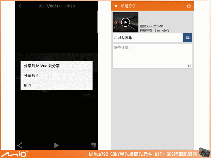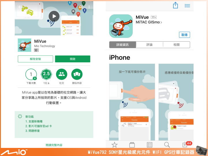 ▲MiVue™ App功能(支援 Android、iPhone 手機),Mio WIFI 獨家優勢: