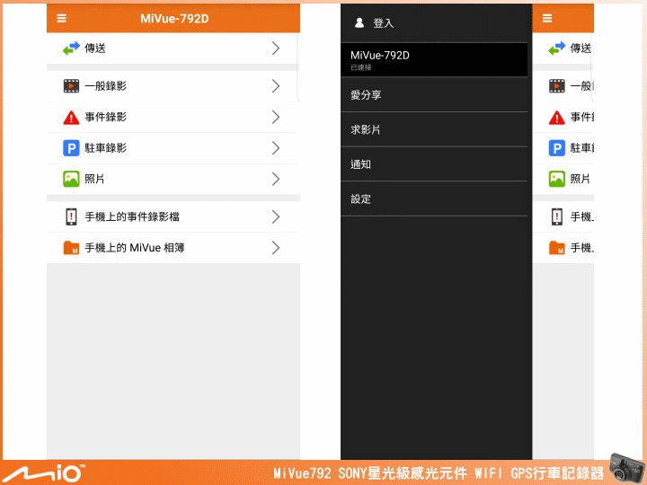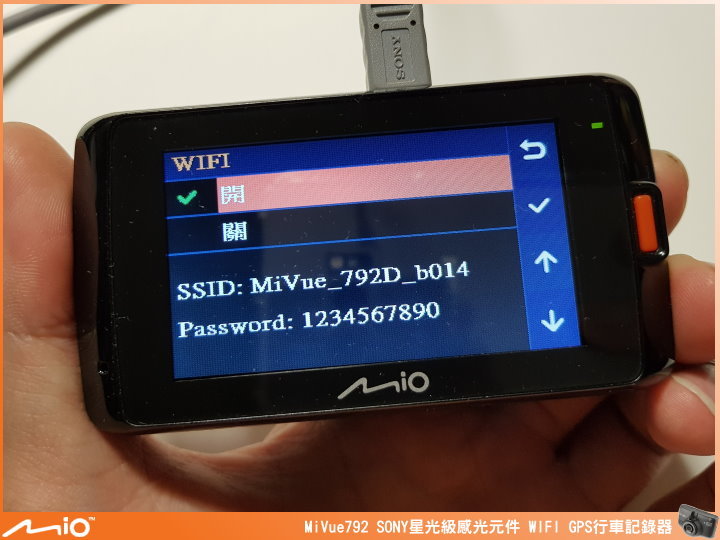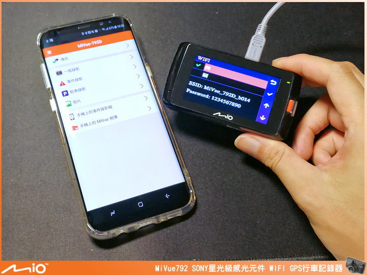 ▲與手機 WIFI 連線操作也相當簡單,只要將選單內的 WIFI 開啟後,將手機 WIFI 開啟搜尋點選指定的 MiVue 792,並輸入預設密碼即可完成連線。