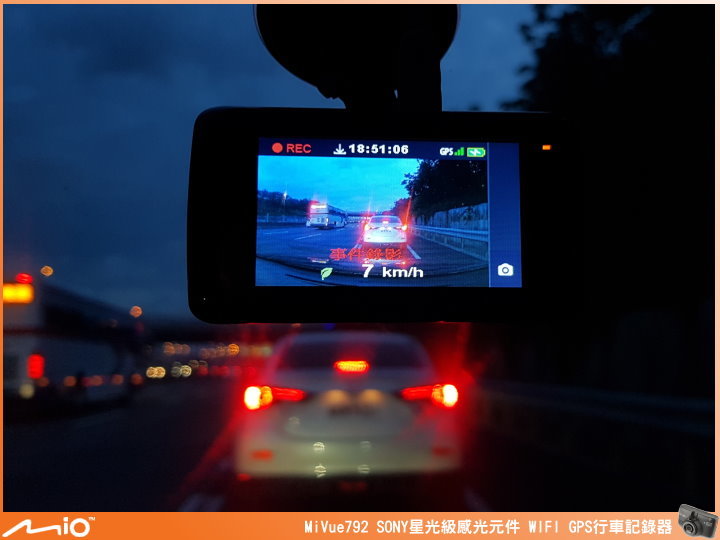 ▲現在就實際看看 MiVue™ 792 的畫質表現,不過十年老車擋風玻璃細紋刮傷蠻嚴重的,所以夜間影片車燈的反射可能會影響表現,這裡要提前說明一下。