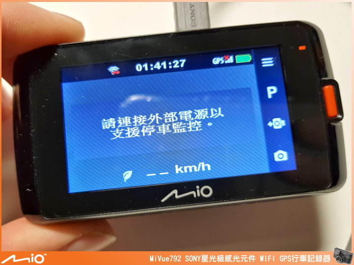 ▲由於內建的電池容量只有 240mAh,所以在開啟駐車模式,斷電時會有提示告知連接外部電源。
