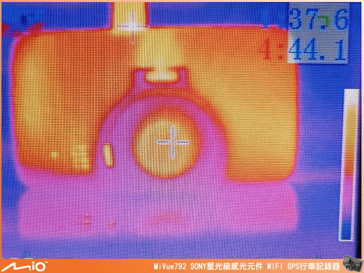 ▲室內使用行動電源開機錄影 30 分鐘後的溫度變化,實際上下班測試一般錄影、開啟駐車模式及ADAS 行車安全警示功能 13 個小時以上都能正常運作,可見 Mio 真的在機身散熱處理上下許多功夫。